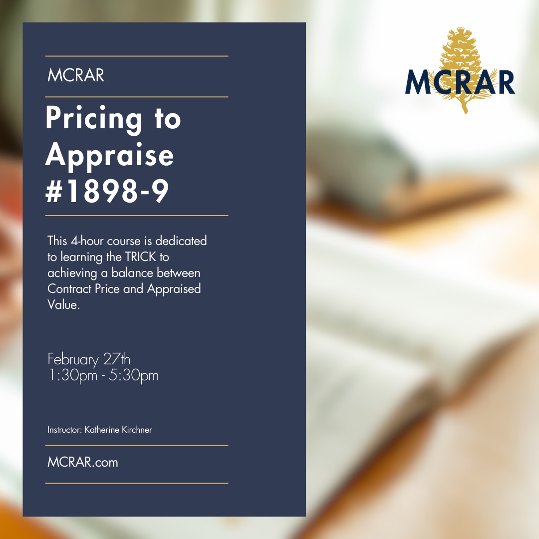 Pricing to Appraise counts for 4 hours of Elective Credit with the North Carolina Real Estate Commission.
