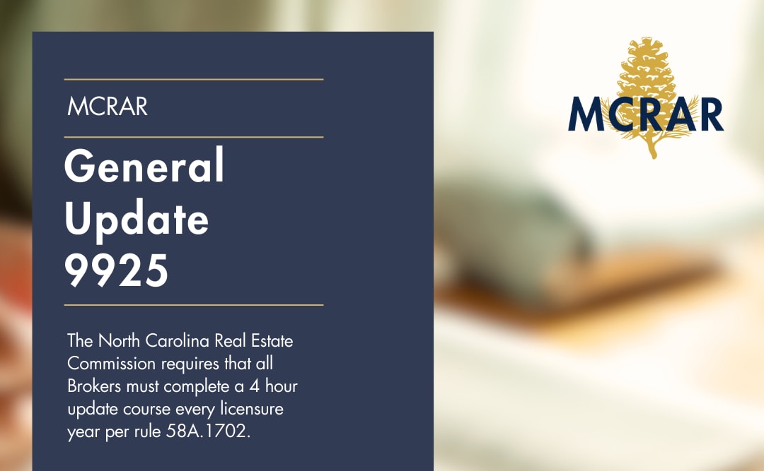 Commission Rule 58A .1702 dictates that every NC broker must take 8 hours of CE each year to maintain active license status (or to maintain eligibility for active status). The 8 hours must be comprised of an Update course (either GENUP or BICUP) and one Commission-approved elective.