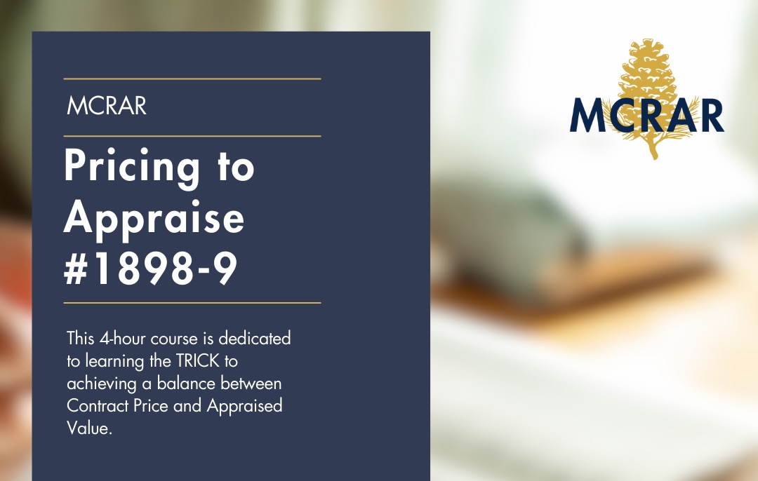 Pricing to Appraise counts for 4 hours of Elective Credit with the North Carolina Real Estate Commission.